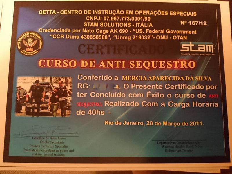 Em 2007, foi convidada por Perito Junior, na época, presidente do CETTA Internacional, para somar ao grupo , usufruindo do maravilhoso benefício de participar dos cursos e palestras para sua capacitação na área Tática no Brasil e fora dele, mas também, a oportunidade de oferecer meus trabalhos como Assessora de Imprensa para todas as atividades que necessitava este órgão naquele período.